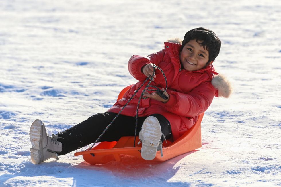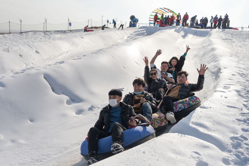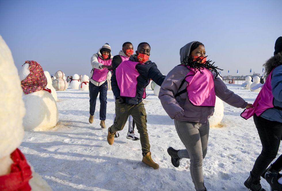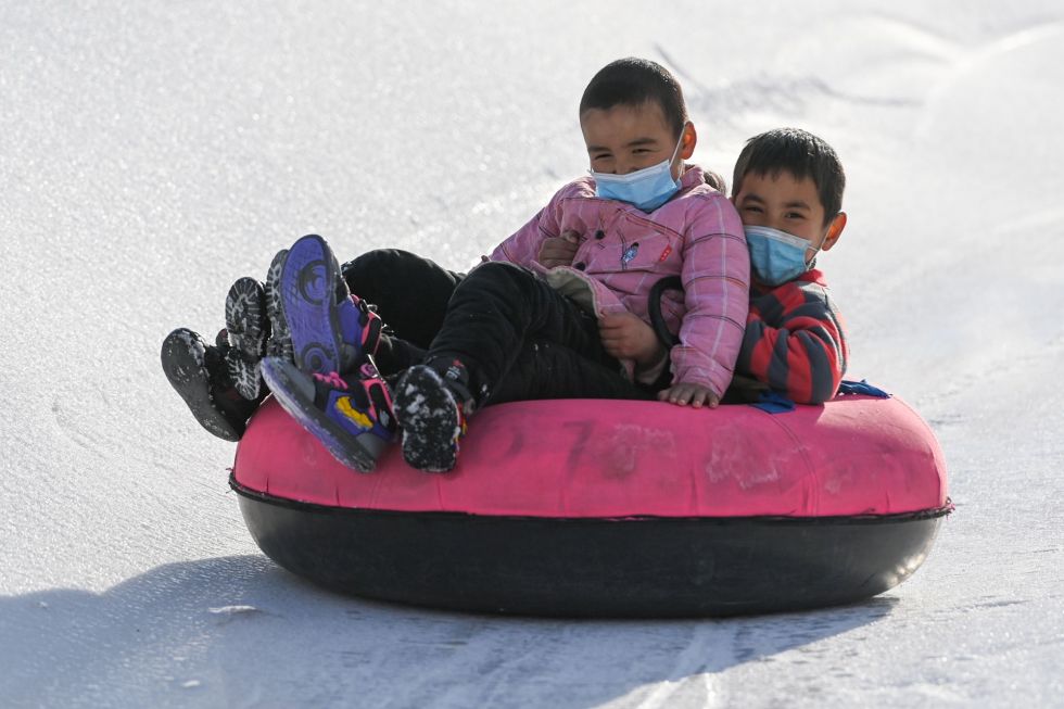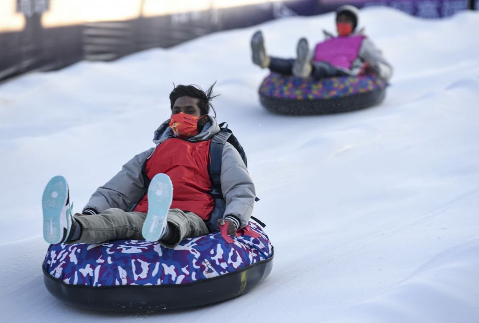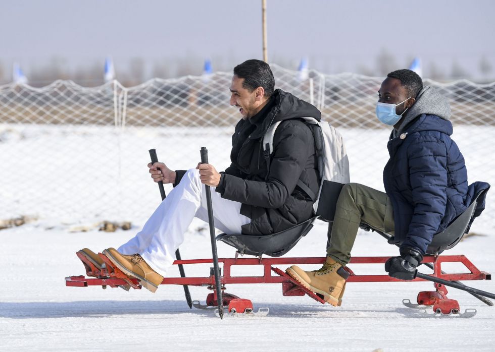 ↑1月10日,寧夏醫(yī)科大學(xué)的27名留學(xué)生在老師的陪同下,來到銀川市賀蘭縣稻漁空間體驗(yàn)冰上爬犁、冰上滑車、雪地跑和雪圈等項(xiàng)目,感受中國濃厚的冰雪氛圍,共同迎接北京冬奧會(huì)的到來。