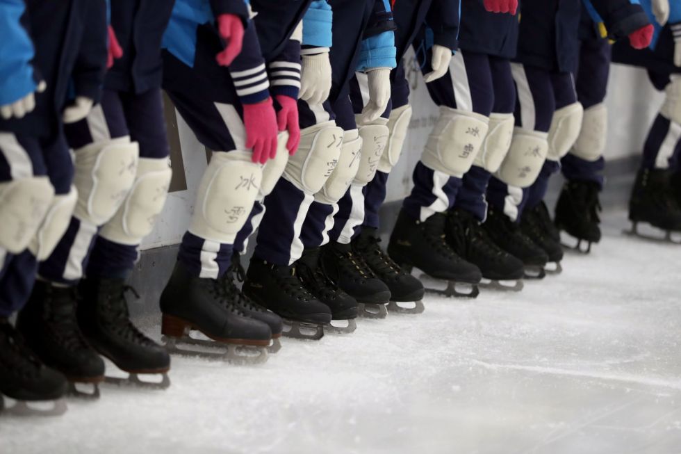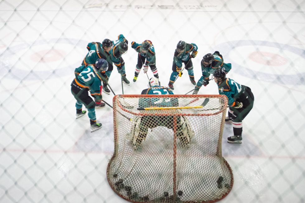 ↑2021年12月24日,杭州的一支冰球隊(duì)在舉行對(duì)抗賽。