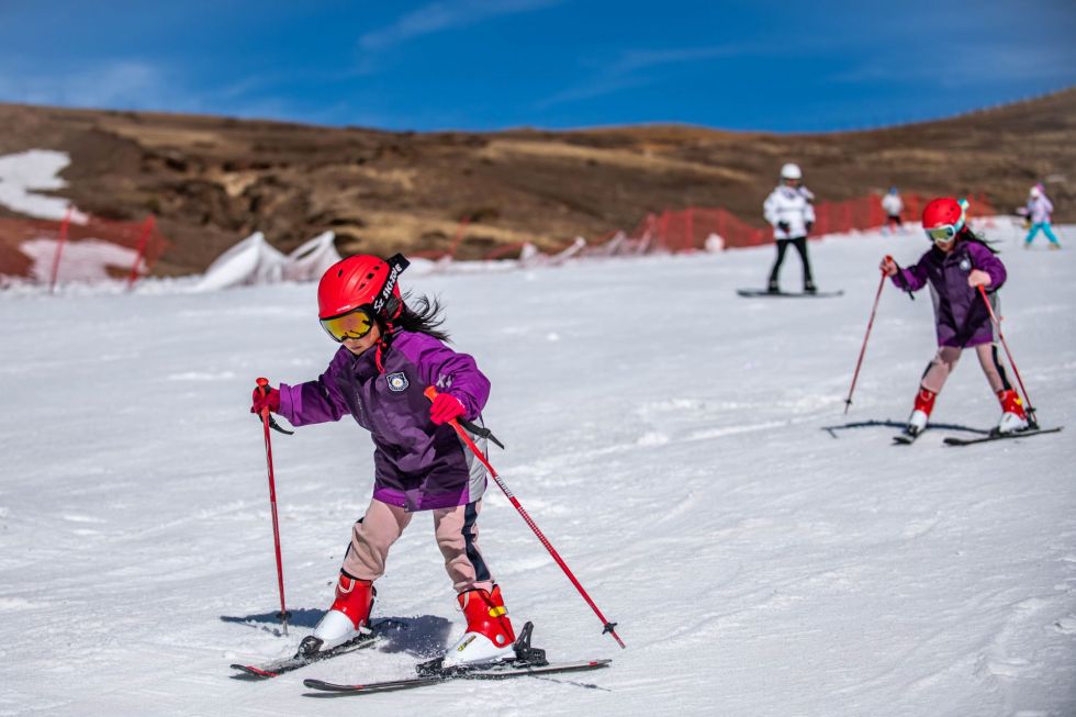 ↑1月11日,兩名小朋友在滑雪場體驗(yàn)滑雪。近日,許多滑雪愛好者來到云南曲靖會(huì)澤大海草山國際滑雪場,享受冰雪運(yùn)動(dòng)的樂趣。